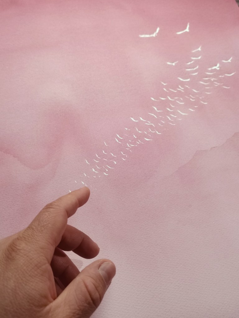 *obraz dostępny jest w Gaijin Gallery w tym oto linku: https://gaijingallery.pl/pl/p/Ptaki-pigment-z-krysztalkami-obraz-akwarela-70x50cm-Grabara/155