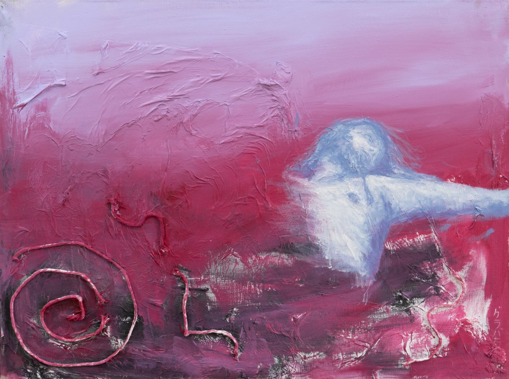 Wzrok skierowany jest poza obraz, do realnego świata.