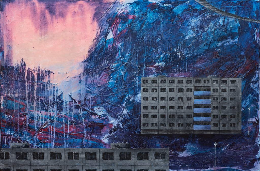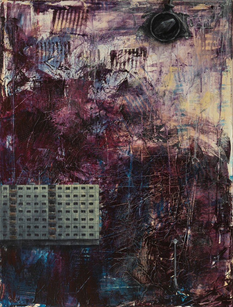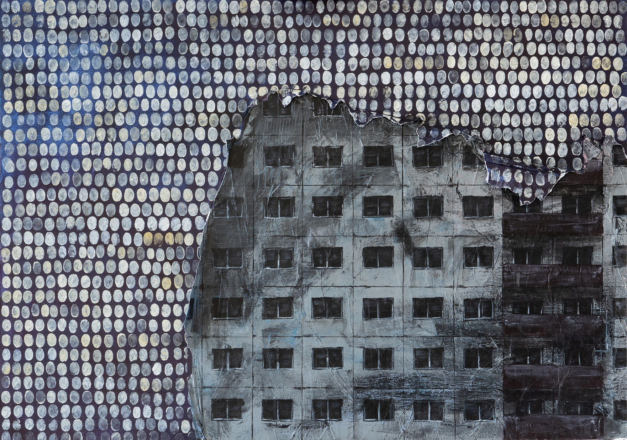 7 piętro. Akryl, akwarela i papier na płótnie, 80x60cm
