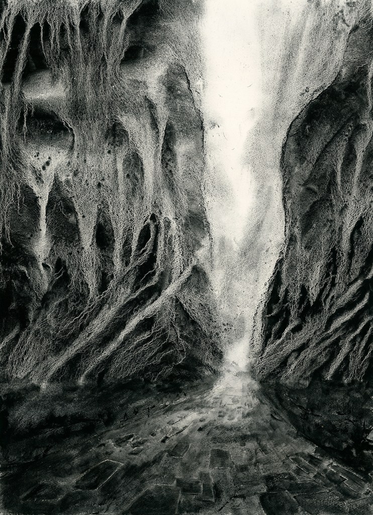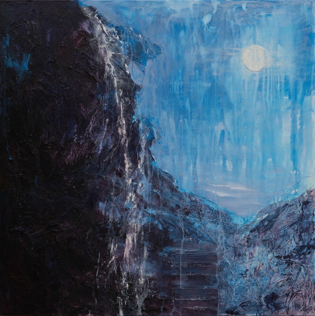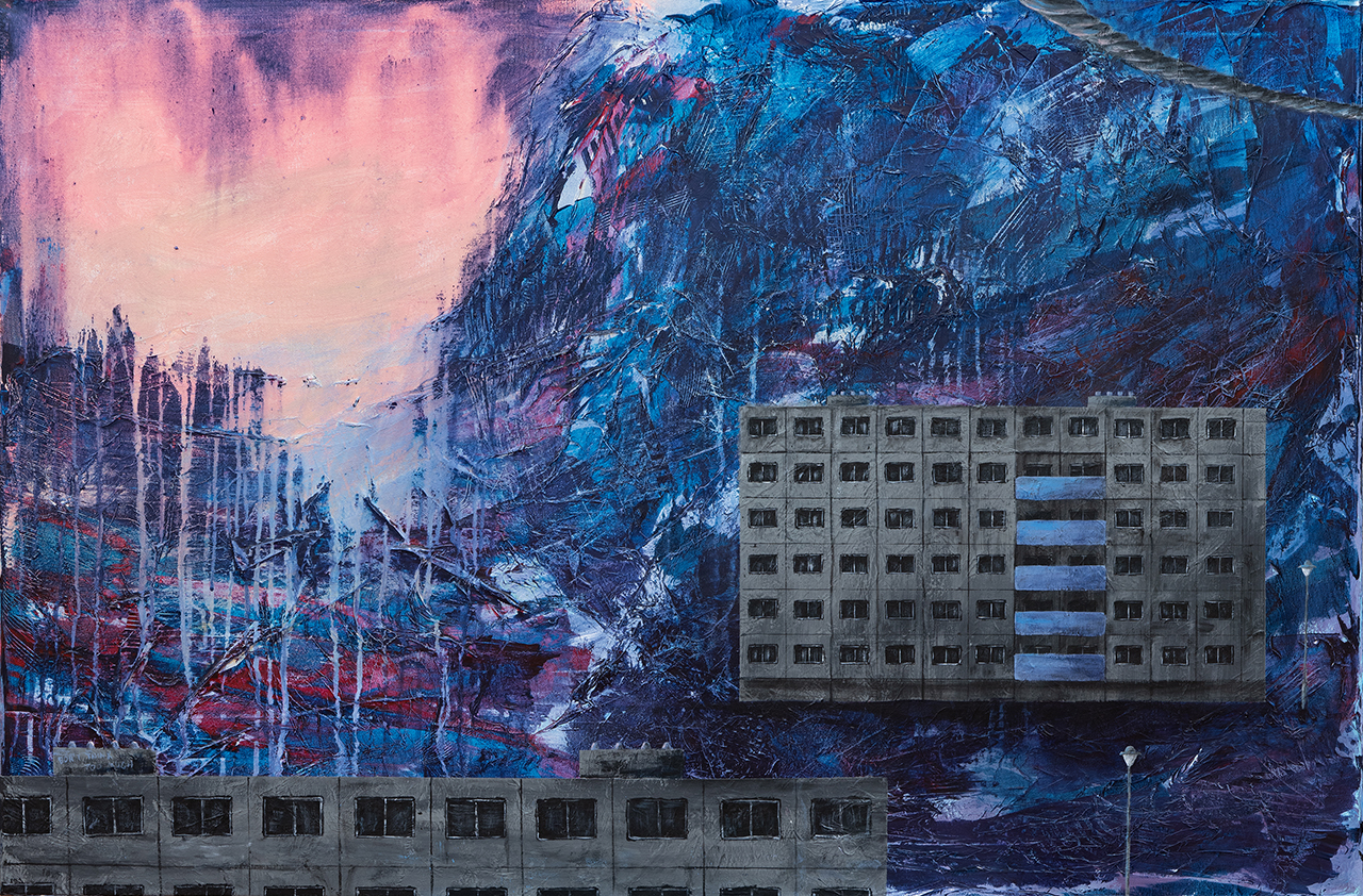 7 piętro. Akryl i papier na płótnie, 140x100cm