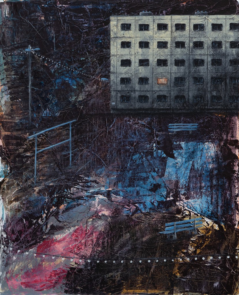 7th floor. Acrylic, watercolor and paper on canvas, 50x40cm