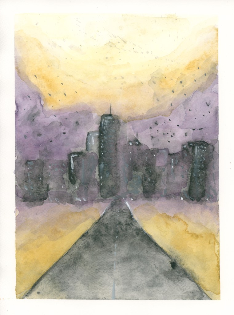 Messenger – pierwszy obraz artysty – akwarela na papierze 24x18cm, 2019