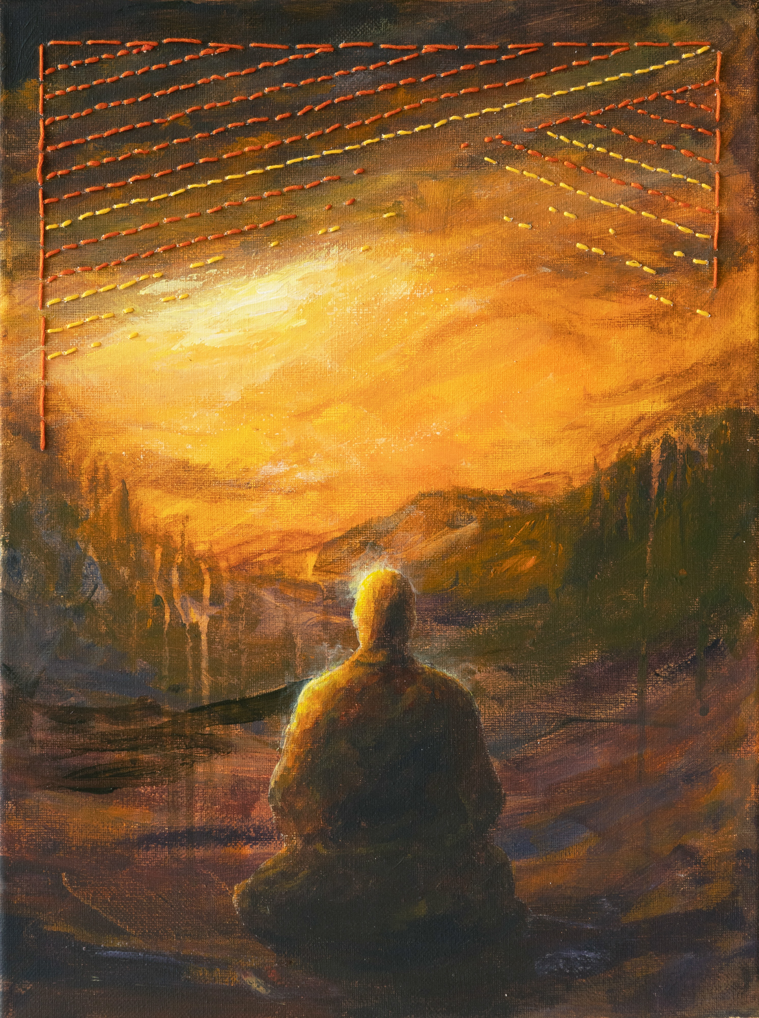 In a series of works called Be a Light to Yourself, he urges the viewer to look inside himself.