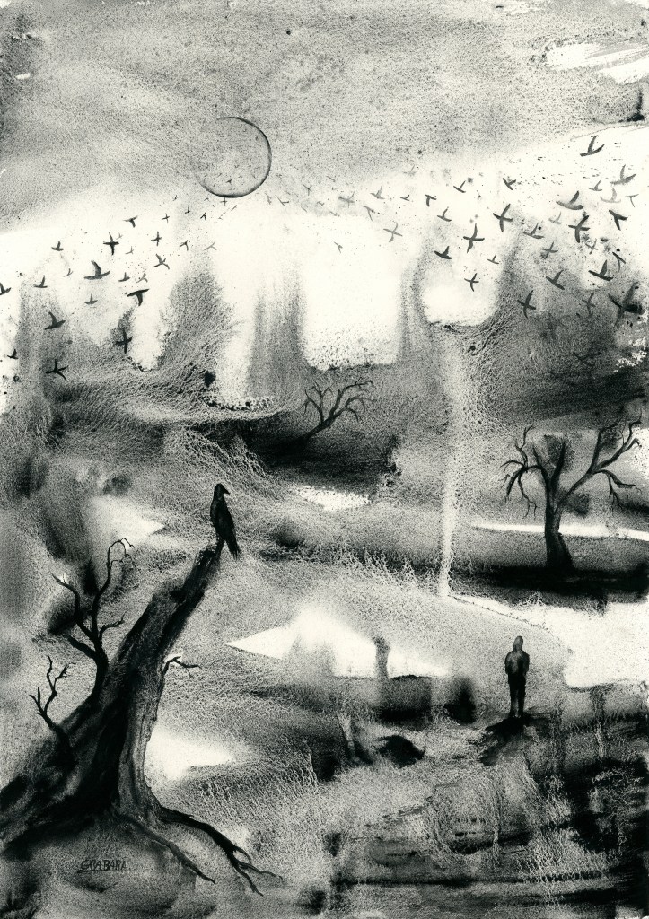 Drifting is a series of watercolor paintings, mostly monochromatic.
