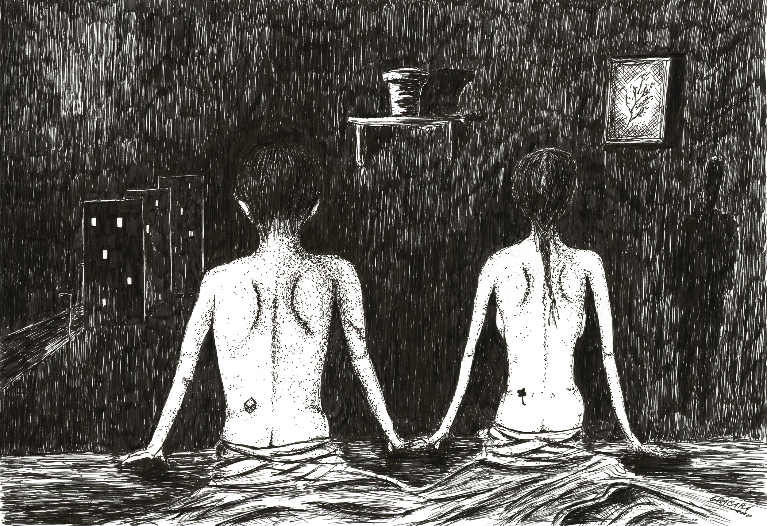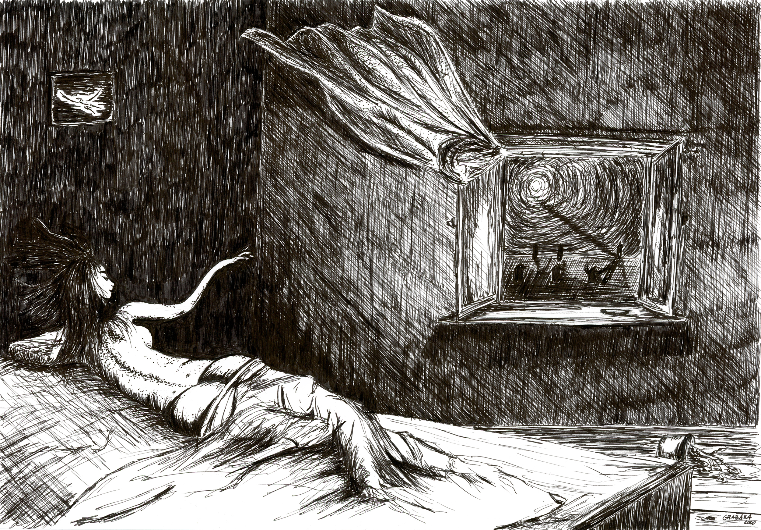 Ink drawings. Krzysiek loves traditional Japanese and Chinese ink paintings. These artworks are mostly small formats.