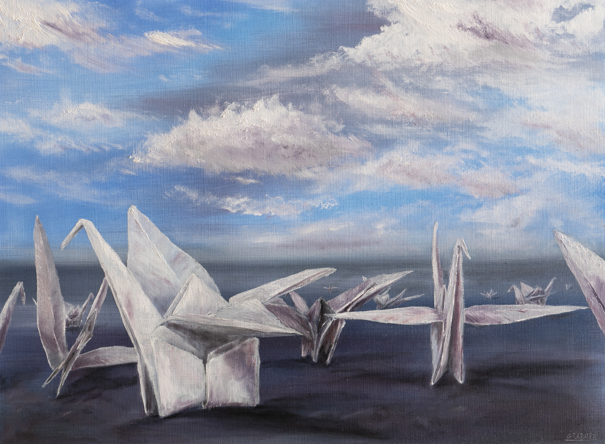 Żurawie, i natura to najczęściej wybierane przez Krzyśka tematy w malarstwie olejnym.